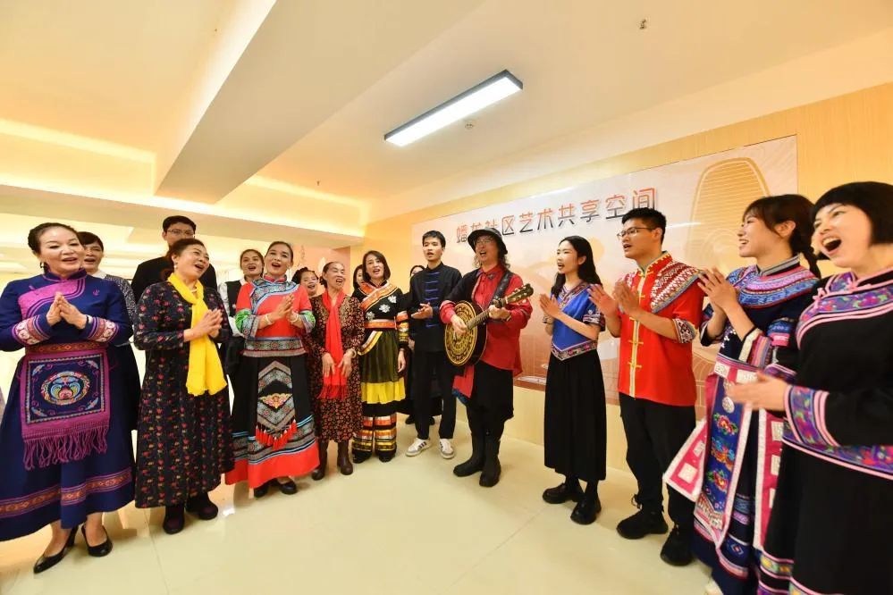 ▲在蟠龍社區新時代文明實踐站,居民在唱山歌。新華社記者 黃孝邦攝