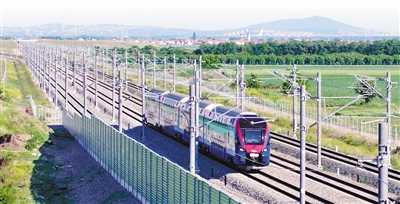 清晨,貝爾格萊德中央火車站站臺上,候車人群井然有序,都在等待“索科”號列車。在塞爾維亞語中,“索科”意為隼——一種以速度著稱的鳥類。率先通車的匈塞鐵路貝諾段,給旅客們帶來了“索科”般的速度體驗——從貝爾格萊德到諾維薩德僅需30分鐘。