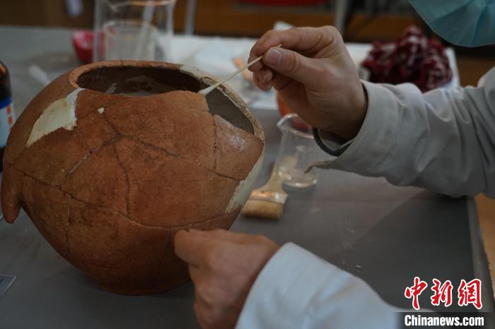 圖為正在被修復的陶器。 中新網記者李江寧 攝