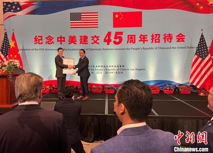 當地時間1月26日,中國駐洛杉磯總領事館舉辦紀念中美建交45周年招待會。 中新社記者 張朔 攝
