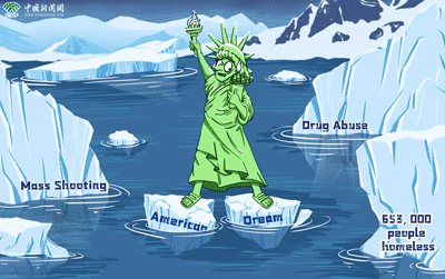 種種社會問題加劇社會悲觀情緒蔓延,社會治理失調凸顯“美國夢”行不再光鮮的事實。據美國廣播公司(ABC News)本月中旬報道,該公司聯合益普索開展了一項關于“美國夢”的民調。與2010年首次開展此項民調時,50%的受訪民眾相信“美國夢”存在的事實相比,最新民調中,僅有27%的人認為“美國夢”依然存在。“噩夢”還是“幻夢”?以激勵個人獲得成功的“美國夢”恐將為社會困局的毒藤所纏繞,“自由女神火炬”指引下的美國夢成為一個個“美國噩夢”。(彭大偉 孟湘君 谷麗萍 陳善坤 薛凌橋)