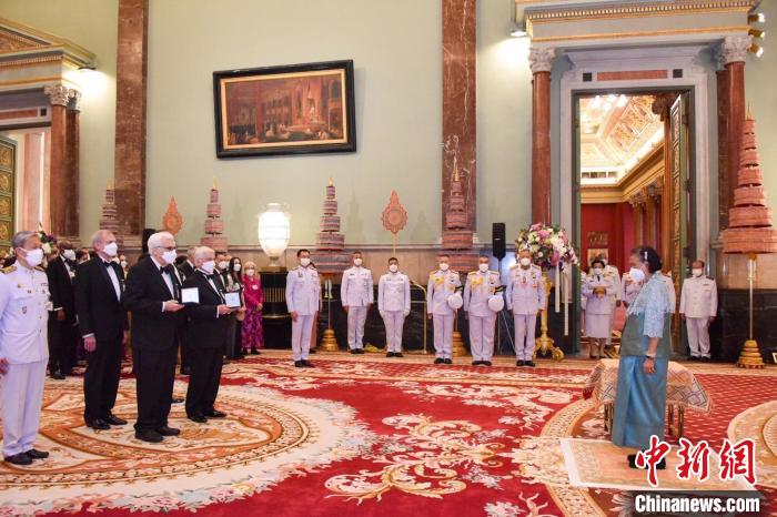 中新網(wǎng)曼谷1月26日電(李映民 陳映玲)當?shù)貢r間24日,泰國詩琳通公主在曼谷大皇宮主持了2023年瑪希隆王子獎頒獎典禮。來自美國加州大學(xué)圣地亞哥分校醫(yī)學(xué)院的拿破侖·費拉拉和來自美國科羅拉多州立大學(xué)醫(yī)學(xué)院的巴里·魯馬克獲得2023年瑪希隆王子獎。