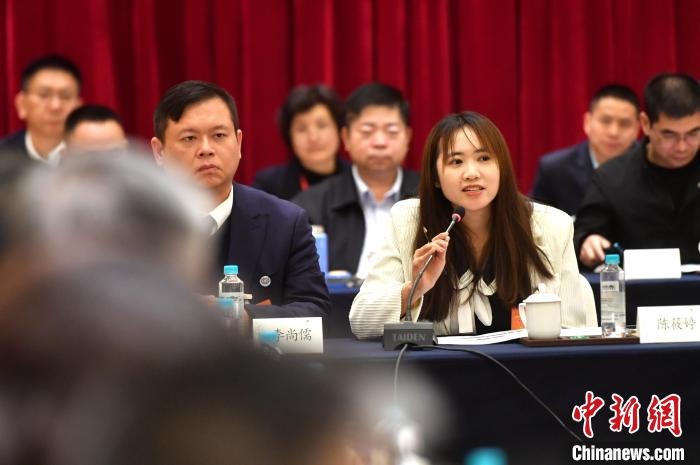 2024年1月22日,在福建省政協十三屆二次會議上,臺灣青年陳筱婷作為列席人員在小組會議上發言。中新網記者呂明攝