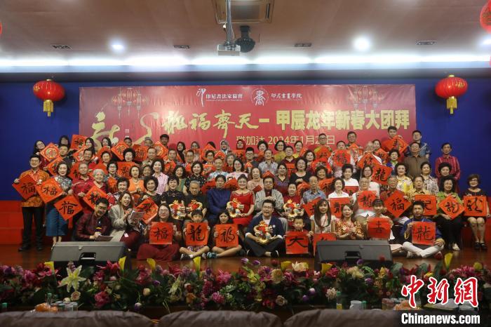 當地時間28日上午,這些書法愛好者齊聚印尼書畫學院,參加“‘龍’福齊天——甲辰龍年新春大團拜”活動。活動由印尼書法家協會和印尼書畫學院聯合舉辦。