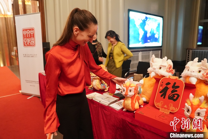 柏林中國文化中心還在現場設置了文化展臺,向來賓展示來自中國的精美文創藝術品和文化旅游推廣品,龍年的“吉祥龍”深受來賓喜愛。