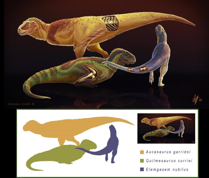 在本項研究中,論文第一作者兼通訊作者、香港中文大學和阿根廷國立內格羅河大學Mattia A. Baiano與同事及合作者一起,利用計算機斷層掃描(CT)和骨骼組織學分析,研究了3組獸腳類恐龍的化石遺骸——分別來自加氏奧卡龍、迷霧嚙王龍和柯氏基爾梅龍,它們均生活在白堊紀晚期(距今約9000萬至7000萬年前)的南美洲。3個物種均為阿貝力龍科的獸腳類恐龍,這類恐龍的典型特征是前肢極短,頭骨深且有力并常生有冠、角等骨質裝飾部位。
