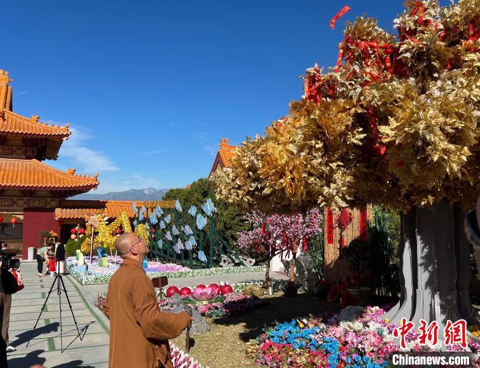 記者當日在西來寺看到,大雄寶殿前,靈動的“歡喜龍”主燈已搭建完成。平安燈會以“云水自在,祥和歡喜”為設計主題,祝福人們懷著喜悅的心情迎接新年。春節期間,寺院成佛大道兩旁還有龍天護佑、五福臨門行三好、百花齊放迎新春、諸事圓滿祈愿樹等景觀。
