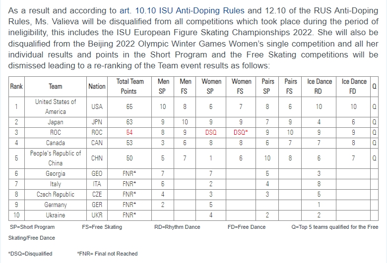 當(dāng)?shù)貢r間30日,國際滑聯(lián)對北京冬奧會花樣滑冰團體成績進行了重新計算,瓦利耶娃所獲得的成績積分被取消,俄羅斯奧委會代表團在花樣滑冰團體項目中的金牌變?yōu)殂~牌。