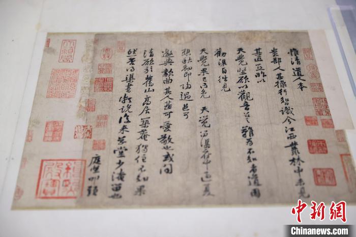 圖為展出的黃庭堅《惟清道人帖》真跡。中新網(wǎng)記者 駱云飛攝