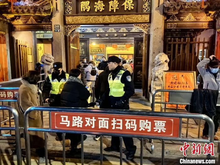 2月10日9時許,位于上海市黃浦區的城隍廟已是熱鬧非凡。據警方表示,為確保龍年新春期間市民安全迎新,黃浦警方事先會同區消防救援支隊等有關職能部門全面進行安全檢查。同時在節日里,每日均落實警力開展巡查工作。