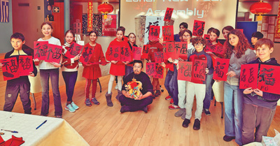 圖為當地學生手持自己書寫的“福”字。