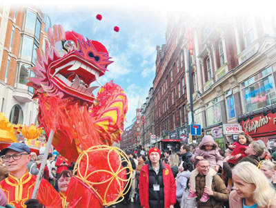 2月11日,英國倫敦華埠商會主辦的新春慶典在倫敦舉行。