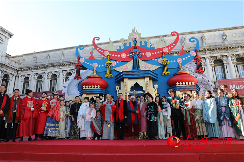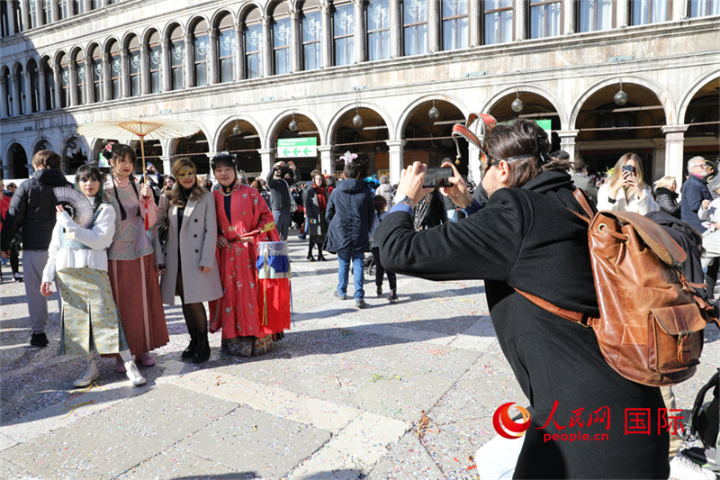 人民網威尼斯2月14日電 (記者謝亞宏)2月13日,為期兩周的年度威尼斯狂歡節迎來最后一天,期間舉行了威尼斯大學孔子學院與蘇州絲綢博物館合作主辦的漢服巡游活動。
