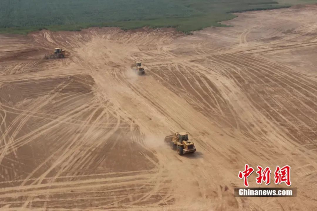 黃河灘涂施工現場。臨猗縣委宣傳部提供