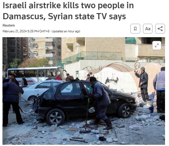 中新網(wǎng)2月21日電 據(jù)路透社消息,當(dāng)?shù)貢r間21日,以色列空襲了敘利亞首都大馬士革,造成2名平民死亡,另有多人受傷。