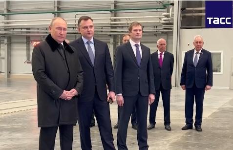 當地時間2月21日,俄總統普京視察喀山飛機制造廠。圖片來源:塔斯社視頻截圖