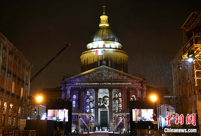 當(dāng)?shù)貢r(shí)間2月21日晚,法國二戰(zhàn)時(shí)期抵抗德國納粹侵略的戰(zhàn)士米薩克·馬努尚與他的夫人梅麗內(nèi)一同入葬先賢祠。馬努尚是首位入葬先賢祠的法共抵抗運(yùn)動成員。 中新社記者 李洋 攝