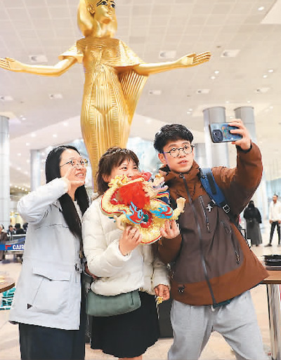 埃及是中國游客春節假期出境游的主要目的地之一。2月10日,開羅國際機場舉辦“歡迎中國游客來埃及過大年”儀式,迎接當天抵達的300余名中國游客。“金字塔、獅身人面像、埃及博物館、卡爾納克神廟……今年來埃及的中國游客尤其多,幾乎每個景點都能看到中國游客的身影。”埃及導游哈迪布告訴記者,春節是他最忙碌的時期。