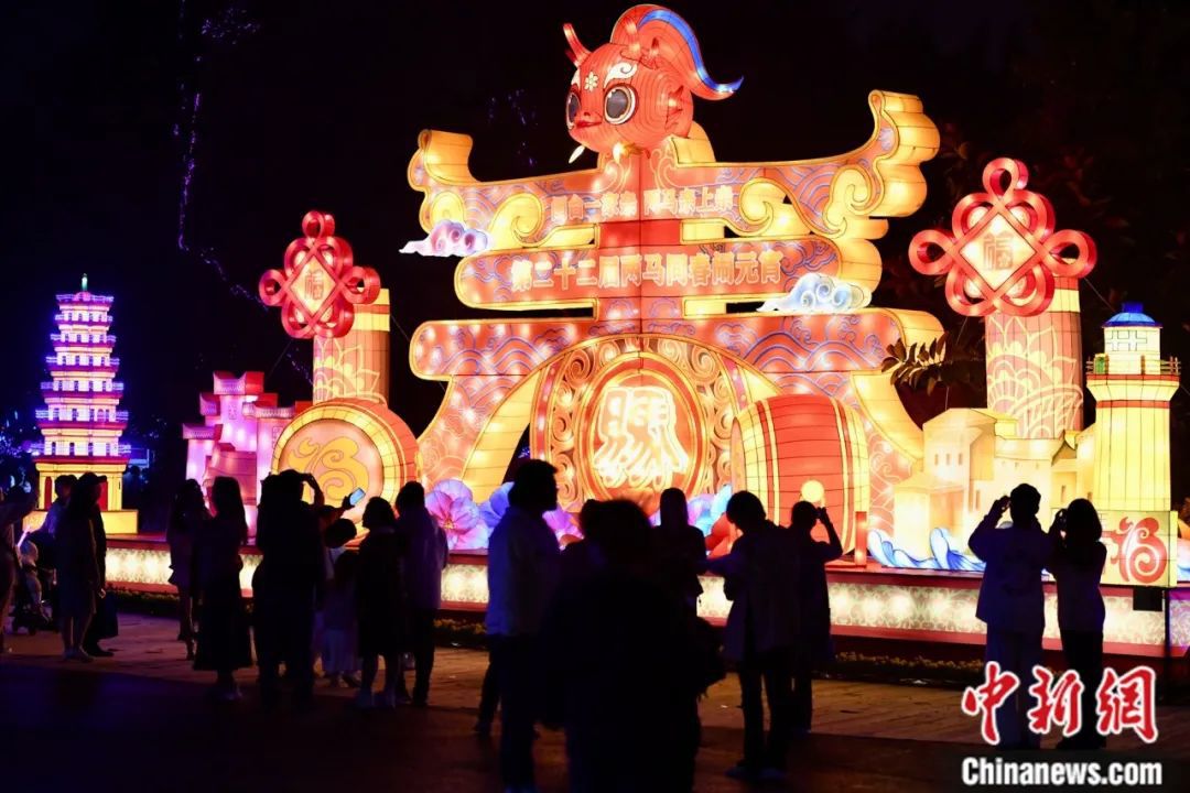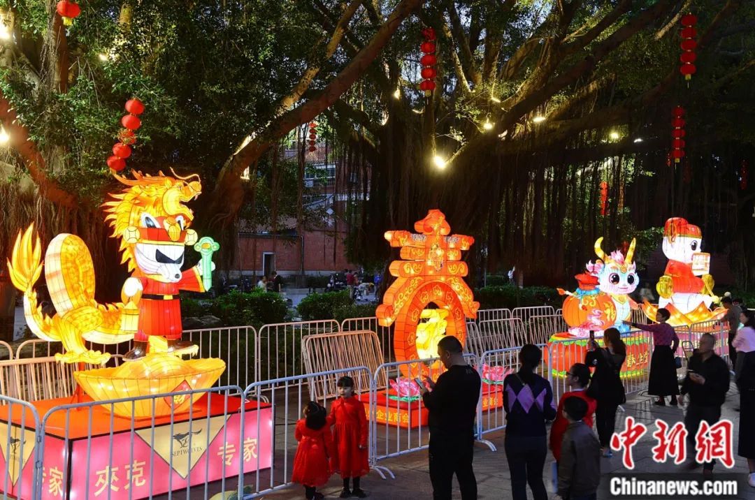 第二十二屆“兩馬同春鬧元宵”燈會(huì)在福建省福州市馬尾區(qū)瑯岐紅光湖公園亮燈,吸引許多市民前來參觀。中新社記者 王東明 攝