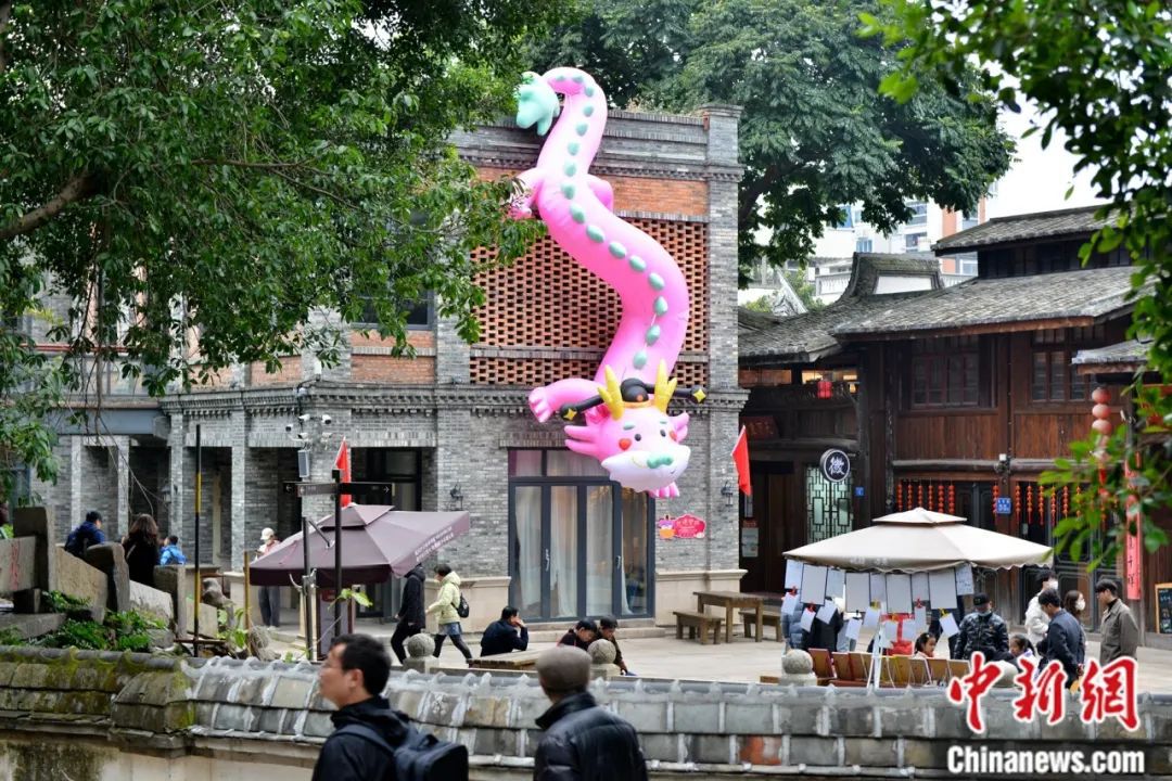 福州三坊七巷古街區(qū)游人如織,龍形燈飾點(diǎn)亮新春氛圍。中新社記者 王東明 攝
