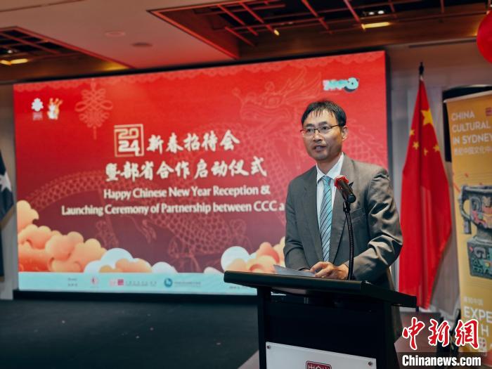 當地時間2月25日,2024年悉尼中國文化中心新春招待會暨中心與西安市部省合作啟動儀式在悉尼中國文化中心成功舉辦。悉尼中國文化中心主任兼駐悉尼旅游辦事處主任劉東感謝過去一年中心的朋友、伙伴和友好人士給予中心的大力支持。記者 顧時宏 攝