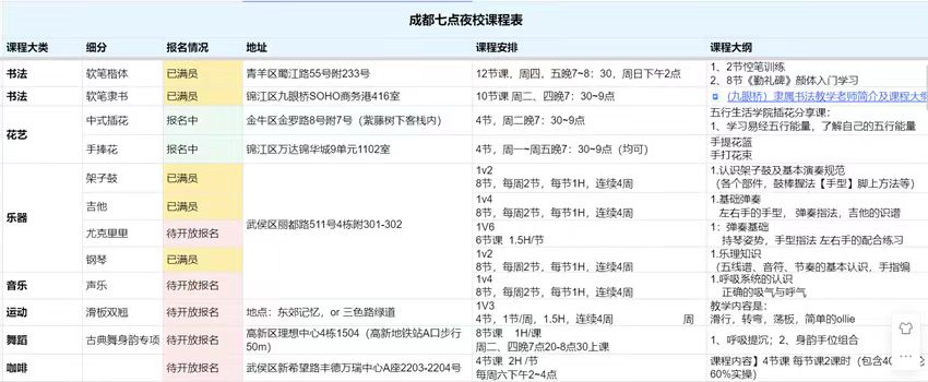 五花八門的副業她都嘗試過,目前比較穩定、收入占比最大的是去年11月開始做的夜校。那段時間,年輕人上夜校的話題火爆,她發現成都還沒有,于是第一個在成都建起夜校社群,以組團的人數優勢去找商家談低價課,類似于興趣班的拼多多,目前社區差不多有5000人。