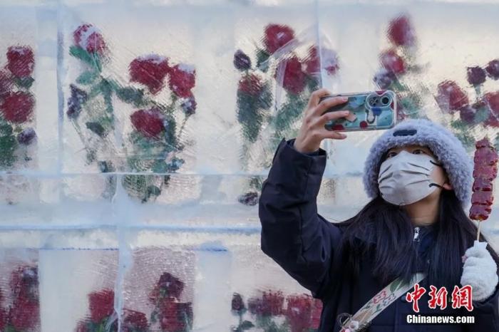 資料圖:哈爾濱中華巴洛克歷史文化街區,冰玫瑰墻吸引游客拍照。趙宇航 攝