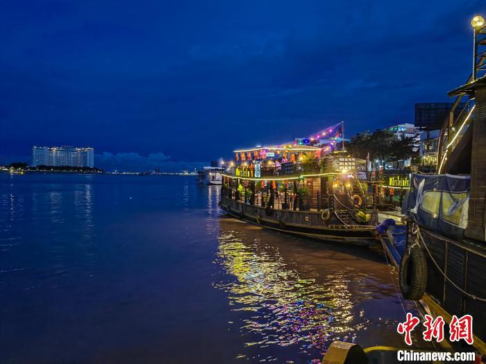游輪成為夜幕下金邊湄公河面一道亮麗的風景(資料圖)。中新社記者 楊強 攝