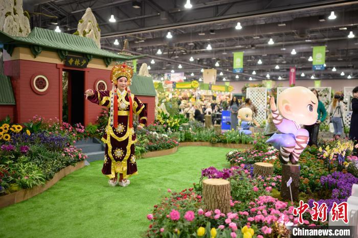 當地時間3月2日,一年一度的費城花展在美國賓夕法尼亞州費城開幕,以“功夫鄭州——花俏嵩山”為主題的鄭州展園當天在花展上亮相。圖為鄭州市豫劇院演員袁娜表演豫劇。 Franck Zhou 攝