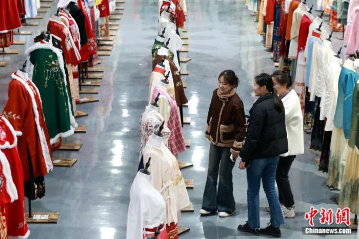 “得益于龐大的生產規模,曹縣漢服產業發展的質量,包括從業人員的原創設計能力、生產工藝等都在提升。”胡春青說。