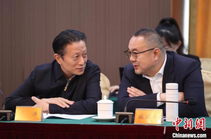 3月5日,全國政協十四屆二次會議僑聯界小組會議在北京舉行。全國政協委員施乾平(右)與榮洋(左)交流。中新社記者 蔣啟明 攝