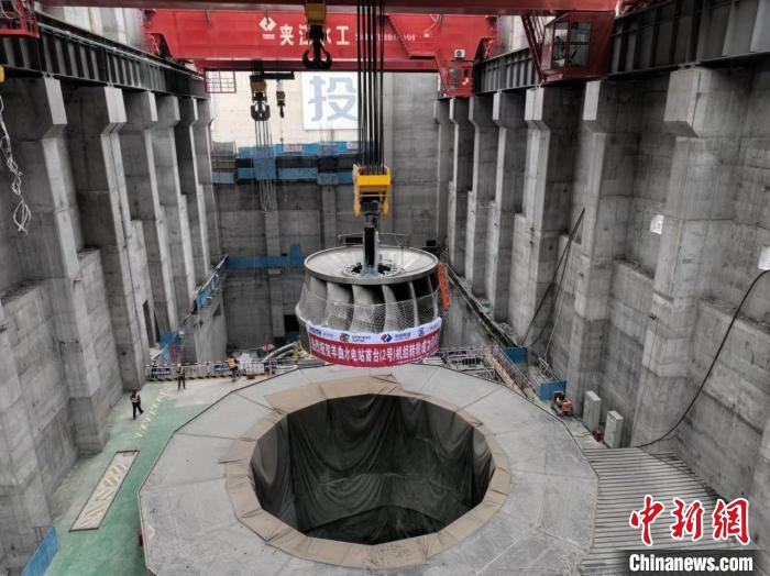 “轉輪是水輪發電機組產生電能的核心部件,被譽為水輪發電機組的‘心臟’。本次吊裝的轉輪由上冠、下環及15個葉片組裝焊接而成,最大直徑6.37米、高3.29米,吊裝總重約114噸,共歷時52分鐘吊裝完成。”黃河公司羊曲籌建處主任楊云峰說。