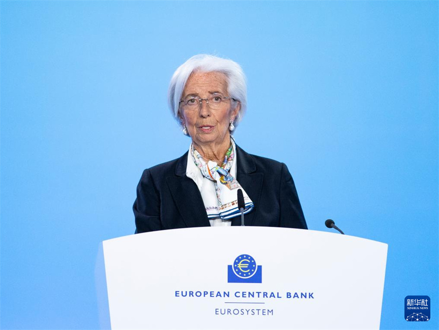 3月7日,歐洲中央銀行行長拉加德在德國法蘭克福歐洲中央銀行總部出席新聞發布會。新華社記者 張帆 攝