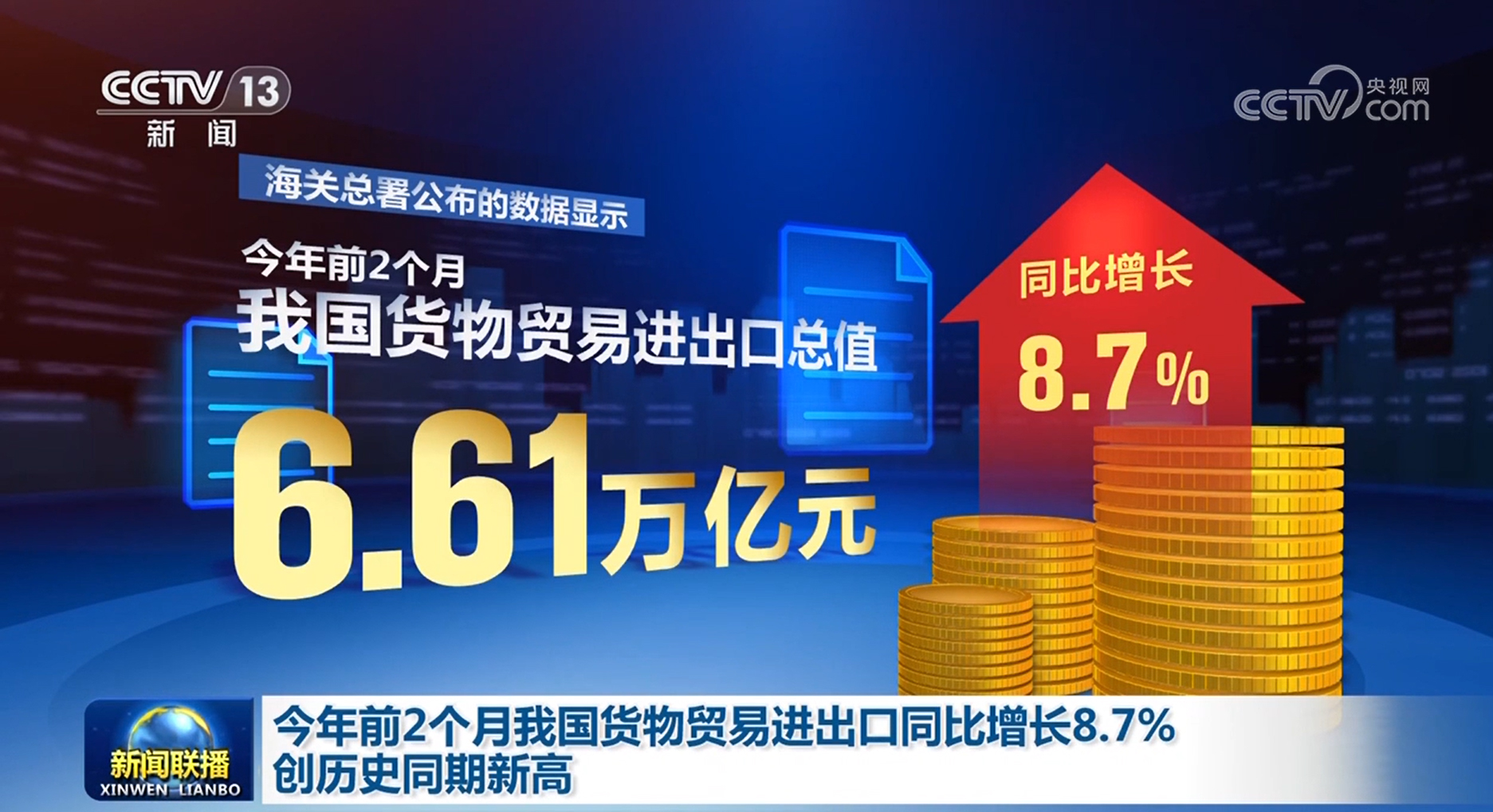 今年前2個月我國貨物貿易進出口同比增長8.7% 創歷史同期新高