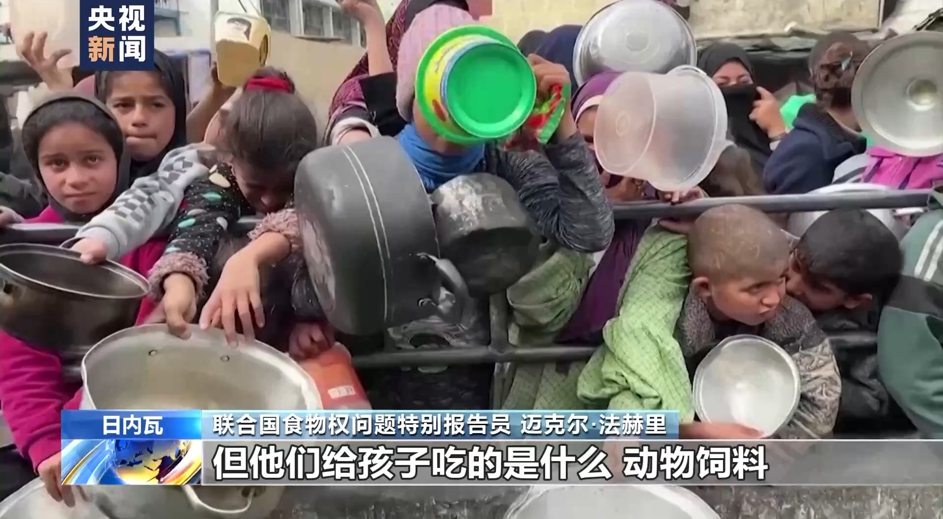 聯合國食物權問題特別報告員 邁克爾·法赫里:在加沙地帶很多人已經放棄吃飯,把食物留給孩子。但他們給孩子吃的是什么?動物飼料。他們給孩子喝什么水?臟水。這會讓他們的孩子更容易生病。