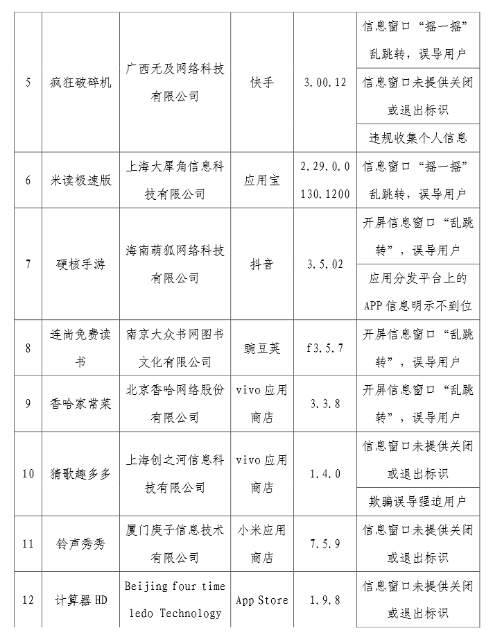 近期,工信部組織第三方檢測機構對用戶反映突出的“搖一搖”亂跳轉、信息窗口“關不掉”以及違規收集使用個人信息等問題進行檢查,共發現62款APP及SDK存在侵害用戶權益行為。