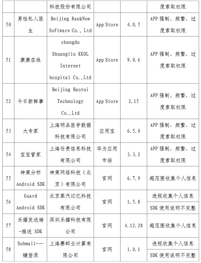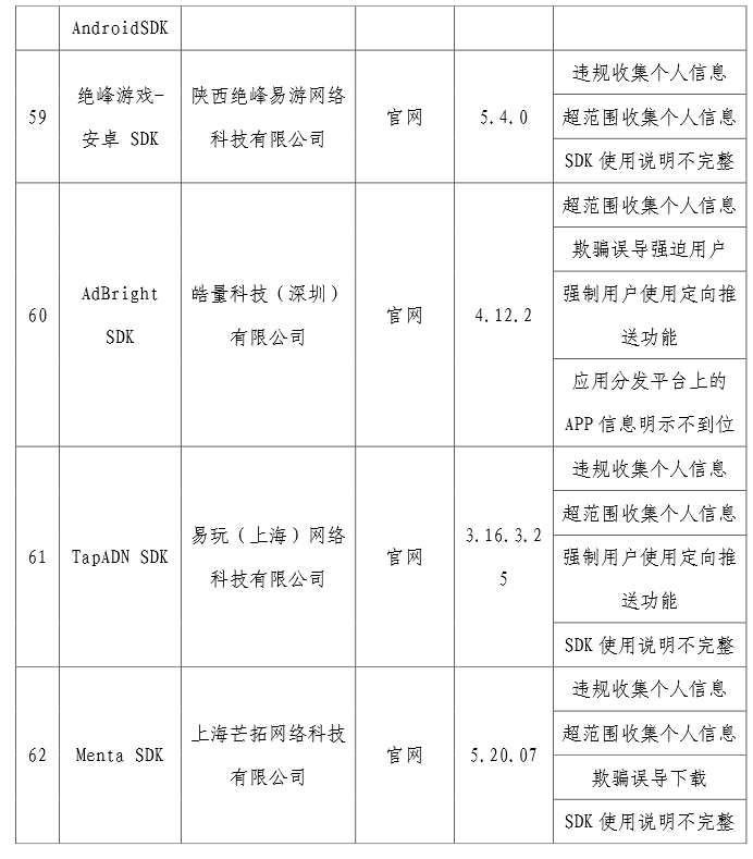 上述APP及SDK應按有關規定進行整改,整改落實不到位的,工信部將依法依規組織開展相關處置工作。