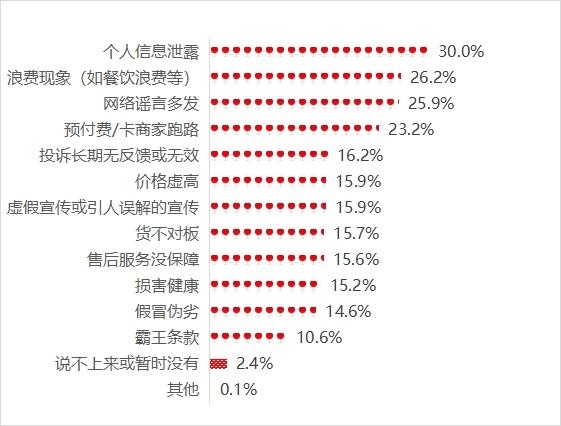 調查數據還表明,當前我國消費環境建設取得積極成效。超七成消費者認為消費環境越來越好,對政府有關部門改善消費環境的工作力度表示認可。與此同時,一些薄弱短板和新老問題仍然困擾消費者,個人信息泄露、浪費現象、網絡謠言和預付卡經營者跑路等問題亟待治理,價格虛高、虛假宣傳、貨不對板、售后服務沒保障、損害健康和假冒偽劣現象不容忽視,應當加強治理。