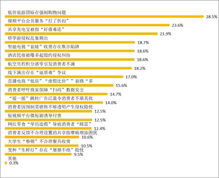中新網3月14日電(中新財經記者 謝藝觀)3月14日,中國消費者協會對外發布2024年“激發消費活力”消費維權年主題調查報告,調查結果顯示,低價旅游團暗存強制購物、視頻平臺會員服務“打了折扣”、共享充電寶“好借難還”引共鳴。