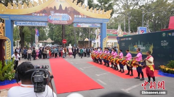 中新社暹粒3月16日電 (楊強 黎海月)當地時間3月16日,柬埔寨第八屆河水節(jié)開幕式在世界文化遺產吳哥窟古跡所在地暹粒省舉行。出席當天活動的柬埔寨首相洪瑪奈表示,歡迎更多中國游客訪問柬埔寨。