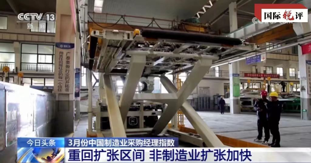 中國官方最新數據顯示,今年3月的PMI、非制造業商務活動指數和綜合PMI產出指數分別為50.8%、53.0%和52.7%,比上月上升1.7、1.6和1.8個百分點,均位于50%以上的擴張區間。其中3月份制造業活動出現半年來首次擴張,并且創下一年來新高。對此,美國彭博社等外媒稱,這表明中國制造業前景趨于樂觀,整體經濟正在企穩。