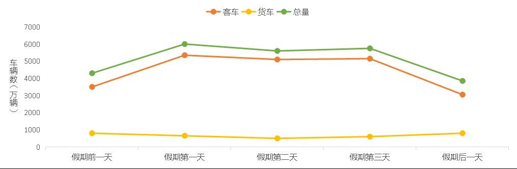 預計清明假期,普通公路日均斷面交通量約9550輛,假期前一天與第一天交通量相對較高,隨后有所下降。