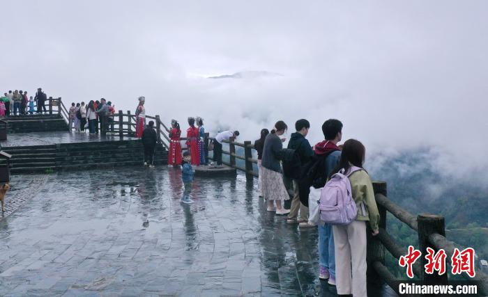 圖為游客在龍脊梯田景區觀光游覽。潘志祥攝