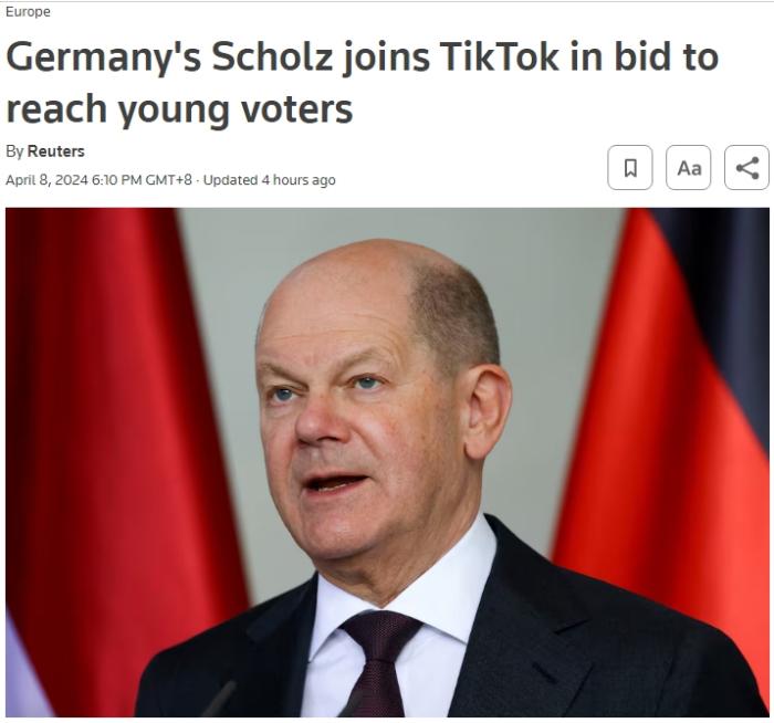 報道稱,朔爾茨加入TikTok是為吸引年輕選民。兩個月前,美國總統拜登也正式加入了TikTok。