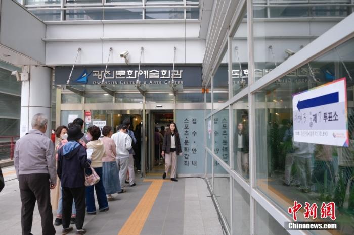 當地時間4月10日,韓國第22屆國會議員選舉啟動正式投票,各政黨候選人將角逐國會300個議席。圖為選民排隊進入首爾市廣津區一處投票站。