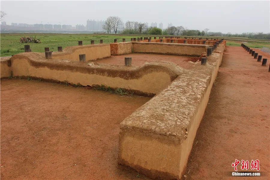 盤龍城遺址宮殿基址復原展示。張芹 攝