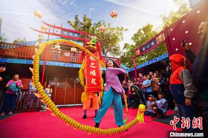 中新社記者4月初走進武館,暗紅色的牌匾、大門、欄桿出現(xiàn)在眼前。在會客廳之后,寬敞的練功房里擺放許多對白龍影響深遠的武者的海報,也有他自己雕刻制作的標語——“龍之崛起(Rise of the Dragon)”。