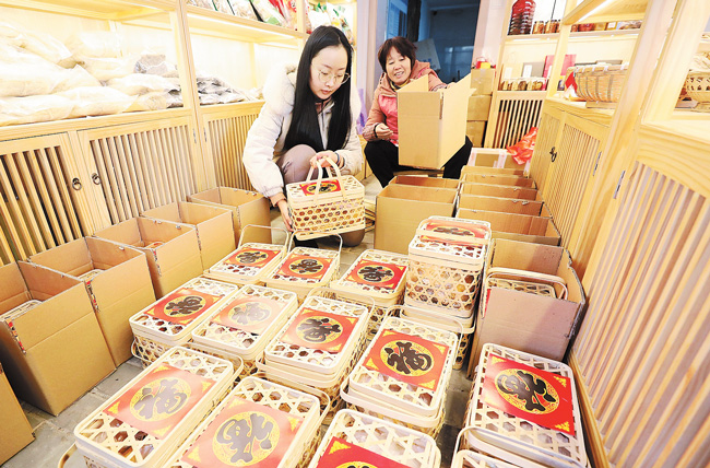 連日來,在麗水市遂昌縣三仁畬族鄉小忠村“小畬味”生態農產品直播展示館里,工作人員正忙著將冬筍、臘肉等農特產打包、發貨。該展示館集中了冬筍、山茶油、番薯干、蜂蜜等幾十種遂昌特產,并通過生態農產品直播平臺,讓本地特產銷往全國各地。(雷寧、章建輝)