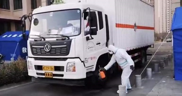 為防疫車輛進行消殺。天津市紀委監委供圖