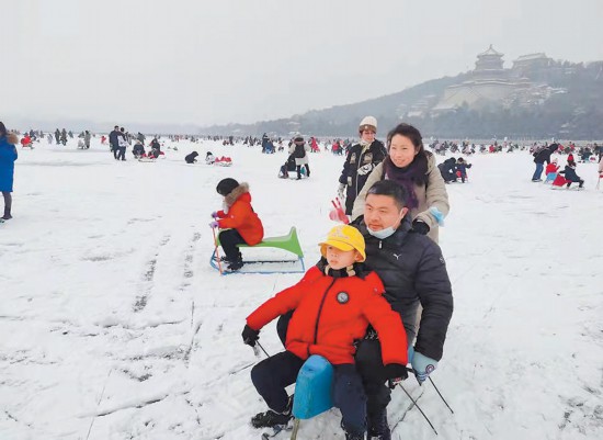 圖為游客在頤和園樂享冰雪運(yùn)動。作為第八屆北京市屬公園冰雪游園會活動內(nèi)容之一的頤和園“圓夢冬奧,相約頤和”項(xiàng)目,今年首次設(shè)置了雪上娛樂項(xiàng)目,讓市民不出京城就可親身感受冰雪魅力。 本報記者 吳鏑攝